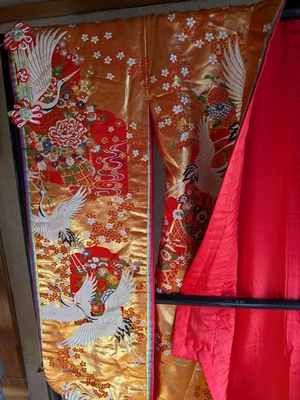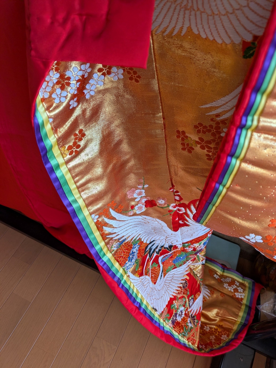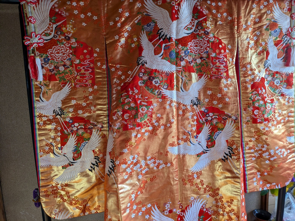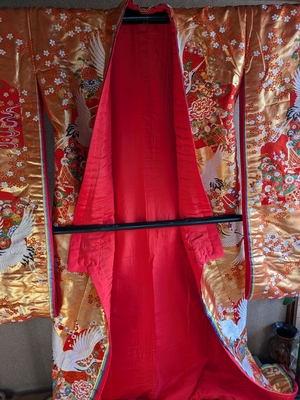珍品:十二単風お色直し用 打掛け(Jyunihitoe Oironaoshi Uchikake) ツイートする シェアする 販売価格: 38,000円(税込み) 会員価格 35,000円(税込み) 通常価格 220,000円(税込み) 在庫 1 商品コード Z4 JANコード 数量 - + カートに入れる カテゴリー 中古打掛け(Wedding uchikake USED)